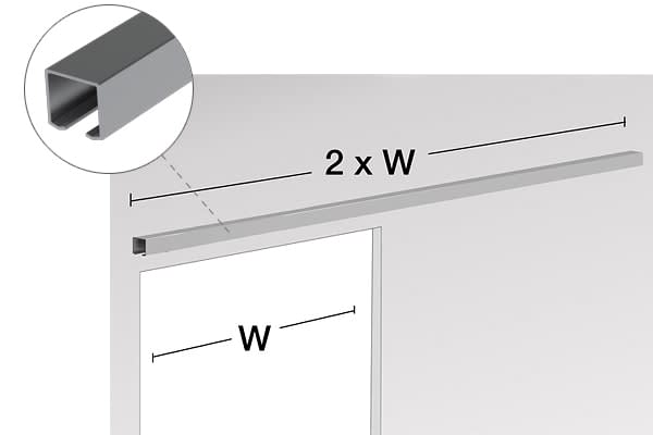 Merk! Flere skinner brukes når det ikke er nok plass til at dørene kan åpnes eller dørene beveger seg side om side. Velg doble braketter for å installere to skinner side ved side.
