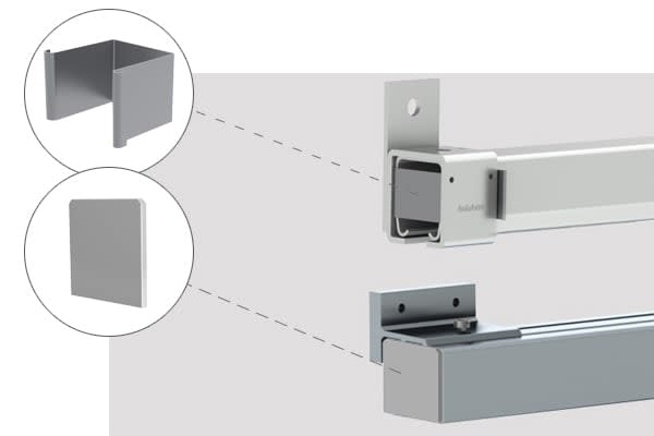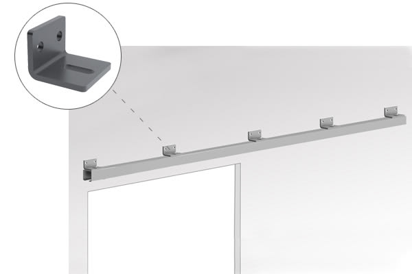 Merk! I lettere serier kan skinnen festes rett under dørkarmen uten braketter. Gjør-det-selv-beslagsett-pakkene inkluderer allerede borede hull for innfesting. Ved behov kan du også skjøte to skinner med skjøter eller skjøtebeslag. Sammenføyning av skinner er generelt mer vanlig i tyngre serier.